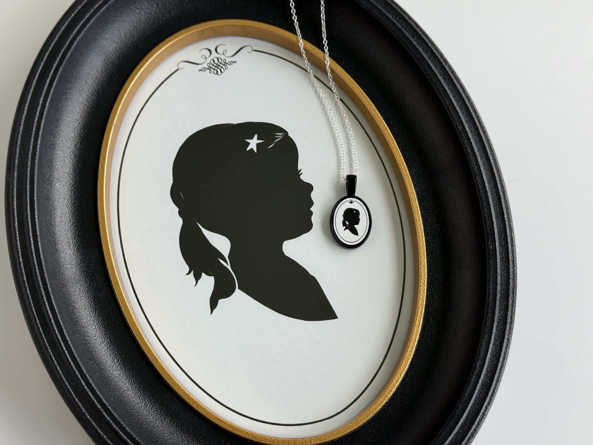A custom necklace that transforms your silhouette photo into a timeless keepsake, inspired by Disney's classic park artists. Simply upload an image of your park silhouette here, and we will faithfully recreate it in miniature!